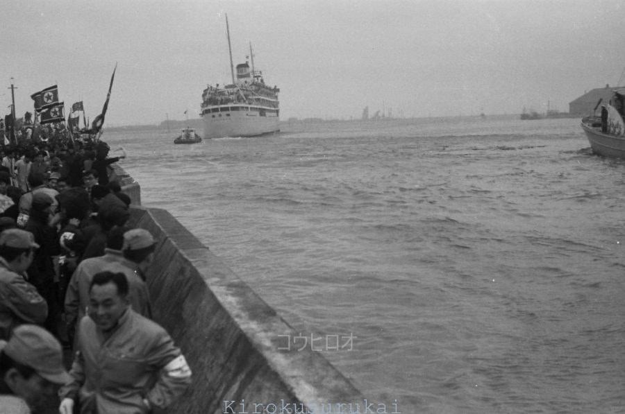 在日の映像作家・康浩郎さん(1938年大阪生まれ)が、日大芸術学部在学中に帰国第一船の出港までの様子を、品川駅・日赤帰還列車発車時、新潟日赤センター内の帰国者と家族(帰国意志確認室)、ソ連のトボリスク号の離岸の様子など撮影した作品。
